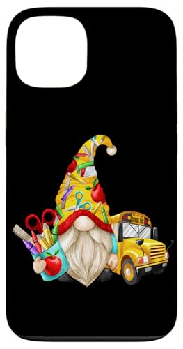 Cute Teacher GNOME with Big Yellow Bus for School Bus Driver Coque pour iPhone 13