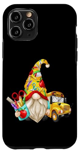 Cute Teacher GNOME with Big Yellow Bus for School Bus Driver Coque pour iPhone 11 Pro