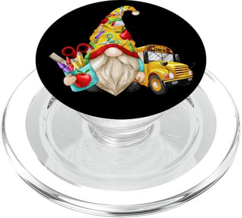Cute Teacher GNOME with Big Yellow Bus for School Bus Driver PopSockets PopGrip pour MagSafe