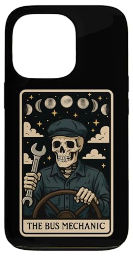 Carte de Tarot Squelette The Bus Mechanic School Bus Mechanic Coque pour iPhone 13 Pro
