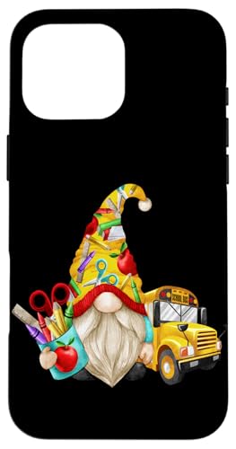 Cute Teacher GNOME with Big Yellow Bus for School Bus Driver Coque pour iPhone 16 Pro Max