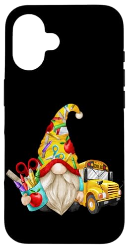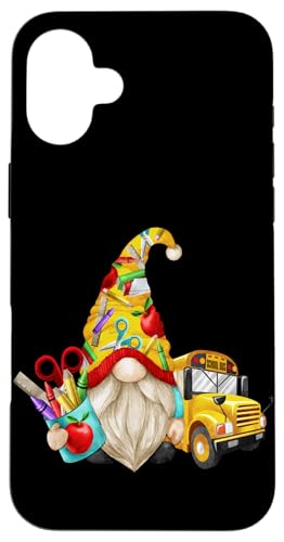 Cute Teacher GNOME with Big Yellow Bus for School Bus Driver Coque pour iPhone 16 Plus