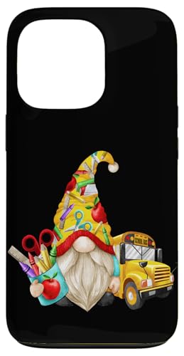 Cute Teacher GNOME with Big Yellow Bus for School Bus Driver Coque pour iPhone 13 Pro