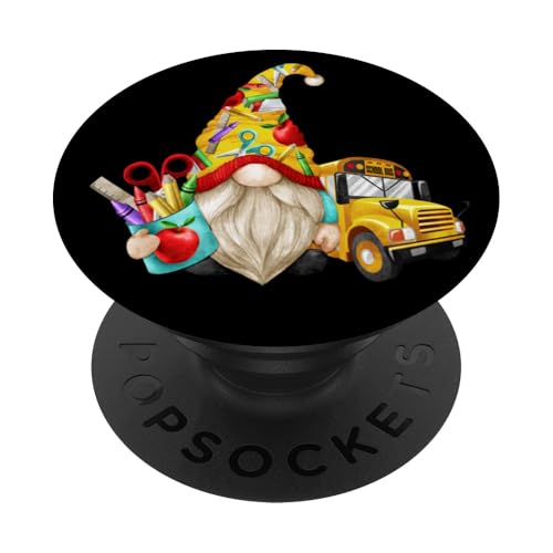 Cute Teacher GNOME with Big Yellow Bus for School Bus Driver PopSockets PopGrip Adhésif