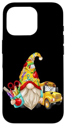 Cute Teacher GNOME with Big Yellow Bus for School Bus Driver Coque pour iPhone 16 Pro