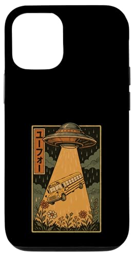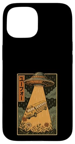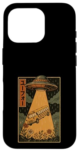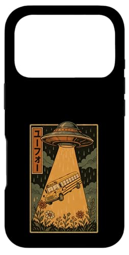 UFO School Bus Vintage, enlèvement par Un Extraterrestre Japonais Coque pour iPhone 17 Pro Max