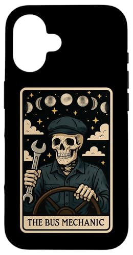 Carte de Tarot Squelette The Bus Mechanic School Bus Mechanic Coque pour iPhone 16 Plus