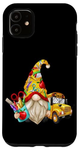Cute Teacher GNOME with Big Yellow Bus for School Bus Driver Coque pour iPhone 11