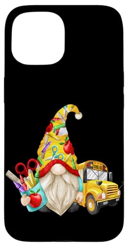 Cute Teacher GNOME with Big Yellow Bus for School Bus Driver Coque pour iPhone 15 Plus