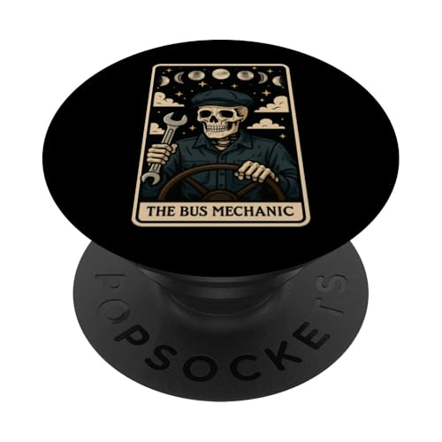 Carte de Tarot Squelette The Bus Mechanic School Bus Mechanic PopSockets PopGrip Adhésif