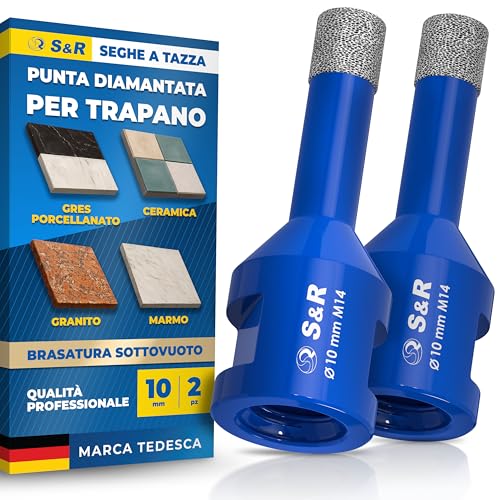 S&R Scie Cloche Diamant 10mm Foret Diamant Carrelage M14 pour Meuleuse – Trépan pour Carrelages 10 mm. Lot 2 Scie à Cloche Carrelage Céramique Grès Cérame Granit Porcelaine Marbre.