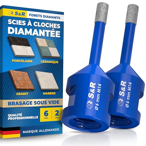 S&R Scie Cloche Diamant 6mm Foret Diamant Carrelage M14 pour Meuleuse – Trépan pour Carrelages 6 mm. Lot 2 Scie à Cloche Carrelage Céramique Grès Cérame Granit Porcelaine Marbre.