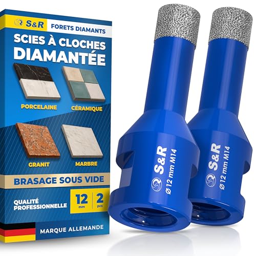 S&R Scie Cloche Diamant 12mm Foret Diamant Carrelage M14 pour Meuleuse – Trépan pour Carrelages 12 mm. Lot 2 Scie à Cloche Carrelage Céramique Grès Cérame Granit Porcelaine Marbre.