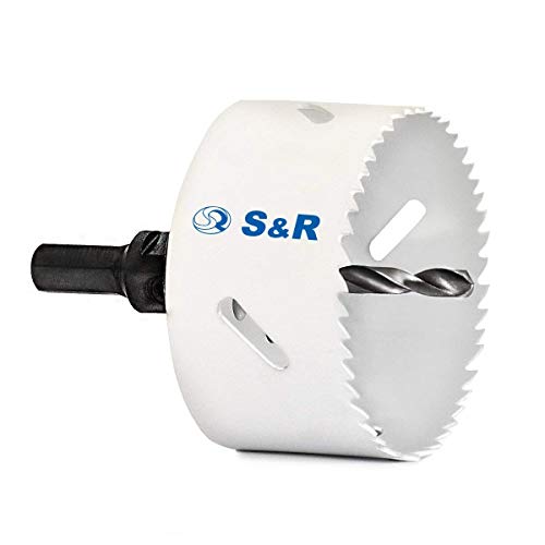 S&R Scie à cloche Trépan HSS Cobalt Bimétal avec adaptateur hexagonal et foret de centrage. Pour bois, acier, métal, fonte, plastique, placoplâtre. MADE IN GERMANY (79 mm)