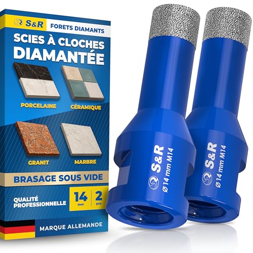 S&R Scie Cloche Diamant 14mm Foret Diamant Carrelage M14 pour Meuleuse – Trépan pour Carrelages 14 mm. Lot 2 Scie à Cloche Carrelage Céramique Grès Cérame Granit Porcelaine Marbre.