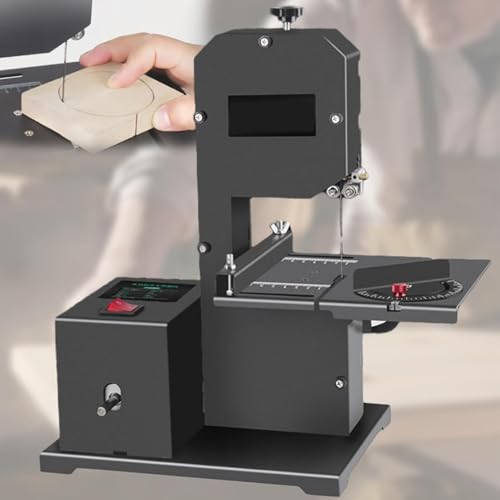 Scie à ruban professionnelle d'établi pour petits ateliers, scie à ruban pour le travail du bois 1750 tr/min avec accessoires, table inclinable en métal de 0 à 45°, profondeur de coupe de 70 mm