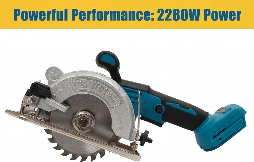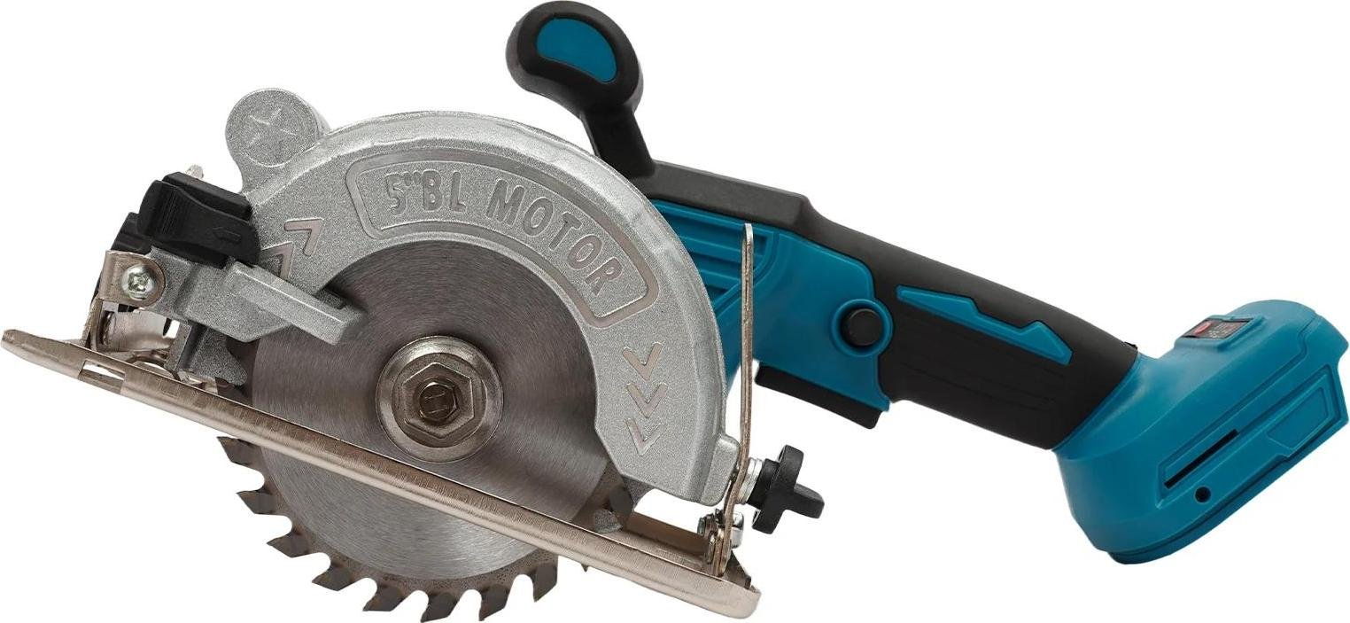 Scie circulaire - Alimentation par batterie - Lame de 12,7 cm - Moteur sans balais - 6200 tr/min - Pour le bois, le métal, le carrelage, le plastique - Sans batterie - Bleu