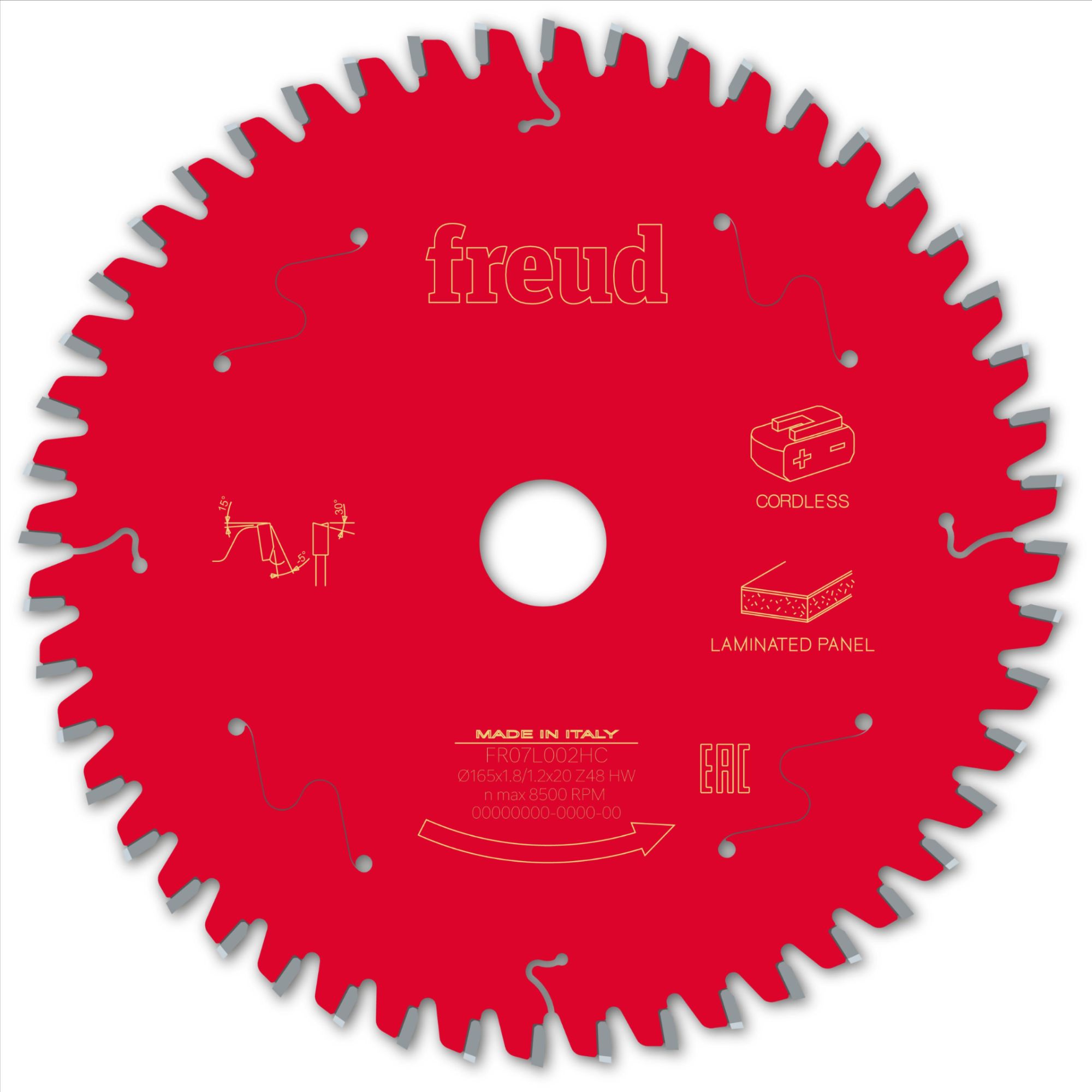 Lame pour scie circulaire portative sans fil FREUD - Ø165 1,8/1,2 AL20 Z48 BA -5° - F03FS10076 -FR07L002HC