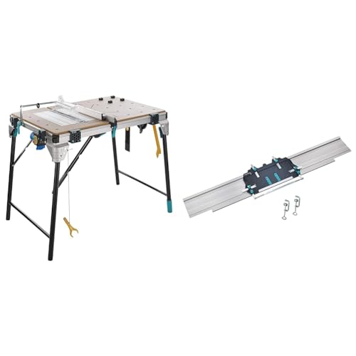 wolfcraft 6918000 - Établi Multifonction Master Cut 2600 - Etabli pour Machines & 6913000 - FKS 145 Rail De Guidage pour Scie Circulaire - Compatible avec Toutes Les Scies Circulaires