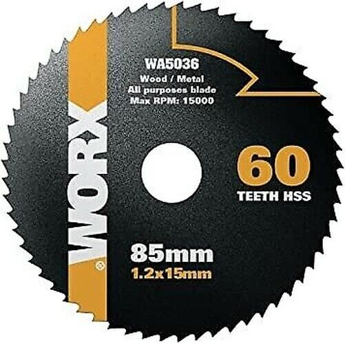 WORX Lame de Scie Circulaire HSS WA5036, 60 dents, 85 mm, Accessoire Universel, Pour la Coupe du Bois, PVC et Métal