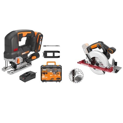 PACK WORX PRO+ Scie Sauteuse 20V + Scie Circulaire 20V + 1 Batterie 2,5Ah + Chargeur + Accessoires (Idéal Pour Tous les Projets de Bricolage et de Rénovation)