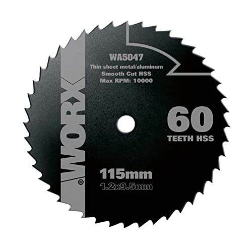 WORX Lame de Scie Circulaire HSS WA5047, 60 dents, 115 mm, Pour la Coupe du Bois, PVC et Métal, Compatible avec les Modèles Worx : WX427, WX429, WX439 et WX531