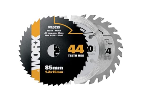 WORX - Lot de 3 lames pour scie circulaire - Pour le bois, métal, carreaux en céramique, aluminium - Ø 85 mm - WA8501 (compatible avec les modèles WORX : WX422, WX423, WX426, WX523 et WX527)