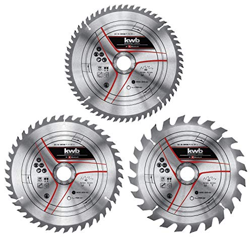 kwb by Einhell Kit de 3 lames de scie circulaire stat. (3 lames aux carbures de tungstène Ø210x30 mm, 1x24 dents, 1x42 dents et 1x60 dents, pour scies circulaires sur table et scies à onglet Einhell)