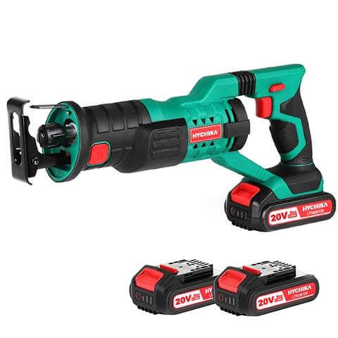 Scie Sabre Batterie, HYCHIKA 18V Scie Egoîne Electrique sans Fil, Vitesses Réglables 0-2800RPM, 4×Lames de Scie, Avec 2Ah, 2×Batteries, 1h Chargeur Rapide, idéal pour la Coupe du Bois et du Métal