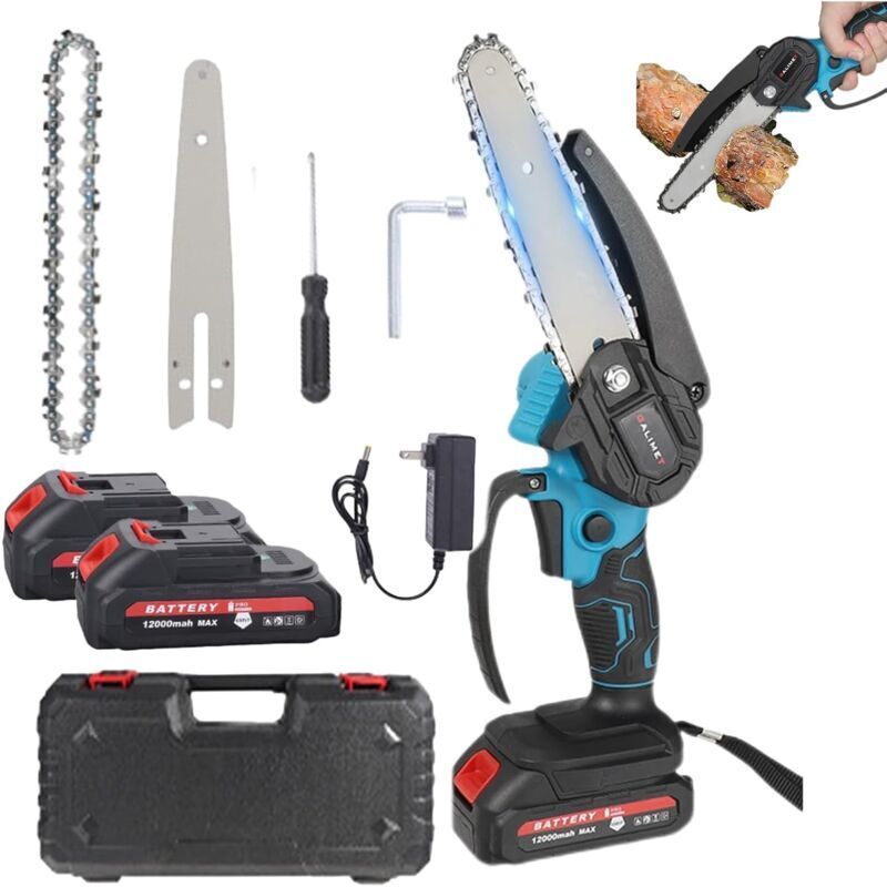 Mini tronçonneuse électrique sans fil de 6 pouces, Sans balais,scie à une main, coupe-bois, pour jardin, branche, coupe de bois, + 2 batterie 5,5 a +