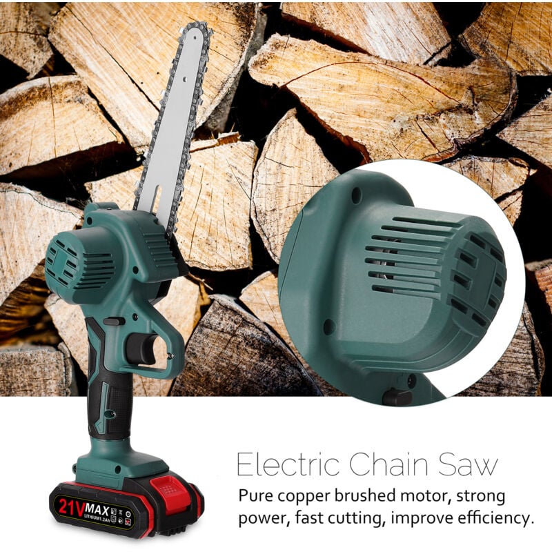 Mini scie à chaîne avec batterie 1500 Mah, 6 pouces, scie à chaîne électrique avec moteur puissant 21V 800W, jardin, coupe de bois en ciseaux