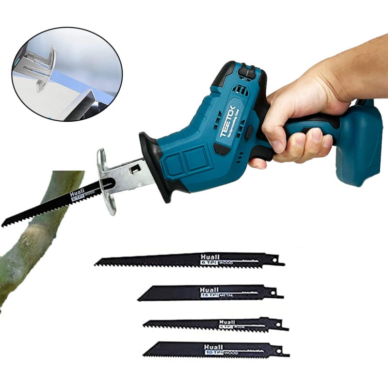 Teetok - Scies alternatives, scie sabre d'élagage électrique sans fil, pour jardin, métal, bois, tuyaux en pvc, coupe d'arbre + 4 lames + batterie