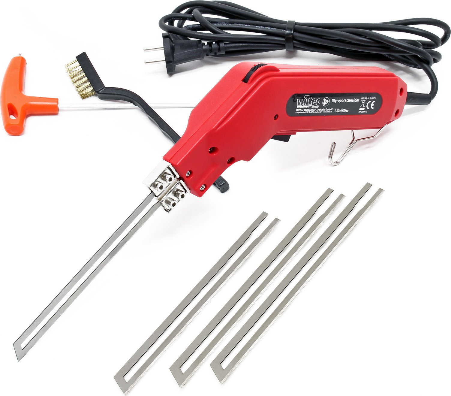 Wiltec Coupe-polystyrène 150 W - température max. 600 °C - Coupeur styromousse 150 mm max. - avec Lamess150 mm/200 mm - Couteau fil chaud Scie découpeuse pour Mousse Styrodur