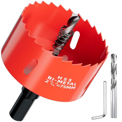 Scie cloche Bi-Métal 75 mm - Profondeur de coupe jusqu’à 30 mm - Idéale pour bois, plastique, cloisons sèches, placo, contreplaqué et métaux - Avec Adaptateur et Foret de centrage