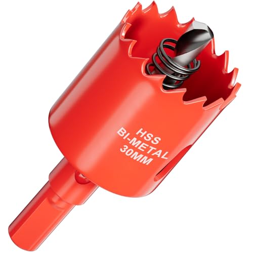 Scie cloche Bi-Métal 30 mm - Profondeur de coupe jusqu’à 25 mm - Idéale pour bois, plastique, cloisons sèches, placo, contreplaqué et métaux - Avec Adaptateur et Foret de centrage