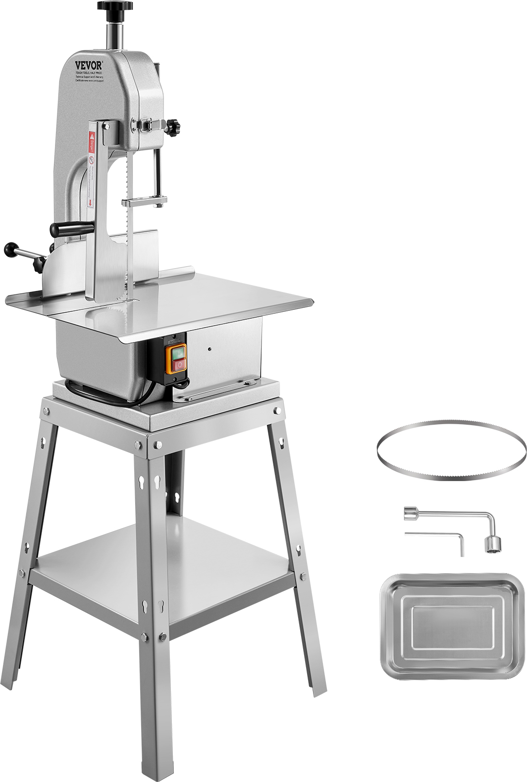 VEVOR Scie à ruban électrique commerciale pour la viande, scie à os verticale 850 W, établi 380 x 485 mm, coupeuse d'os, coupeuse de viande congelée avec lame pour les côtes, la viande de porc