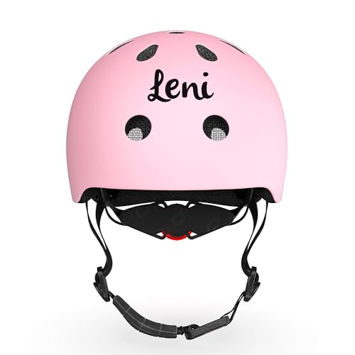 Scoot and Ride Casque Enfant (S) Rose – réglable & lumière de sécurité LED – Finition Mate – pour Enfants – personnalisé avec prénom