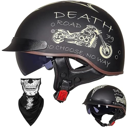 DJCALA Open Face Casque Moto Casque Moto Jet Vintage avec Visière Retro Style de Vintage Casque Moitié Helmets de Casque Moto Jet Scooter Touring Casque Retro Chopper Bobber