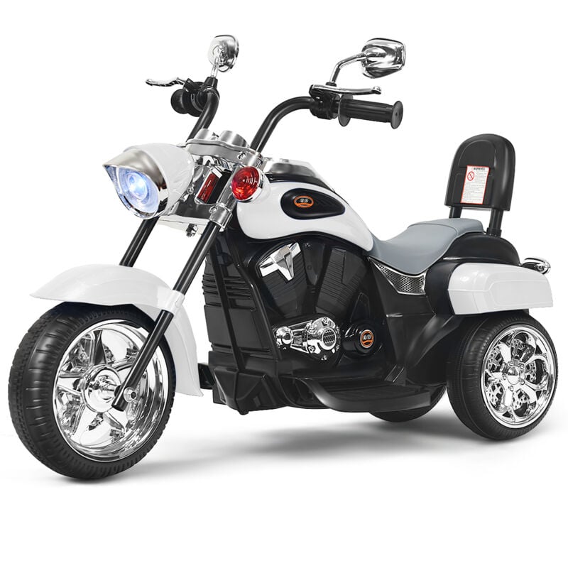 Costway - Moto Électrique 6V pour Enfants Scooter avec 3 Roues Effet Sonore et Lumineux, 3Km/h Max, 3 Ans + Style de Chopper Blanc