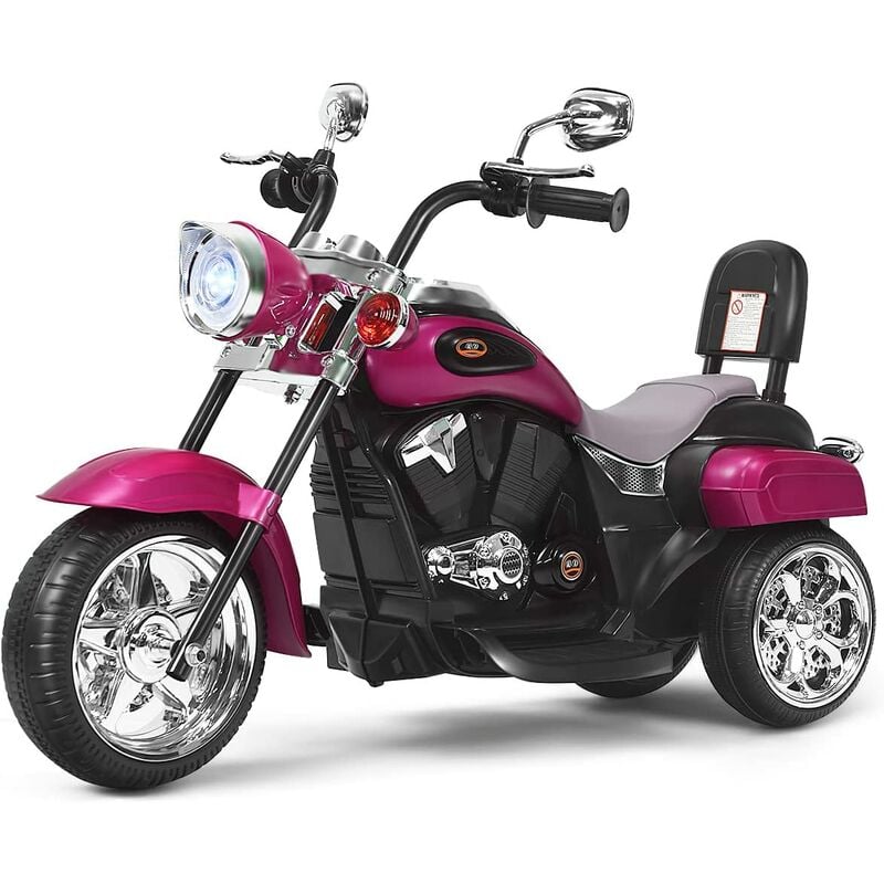 Costway - Moto Électrique 6V pour Enfants Scooter avec 3 Roues Effet Sonore et Lumineux, 3Km/h Max, 3 Ans + Style de Chopper Rose