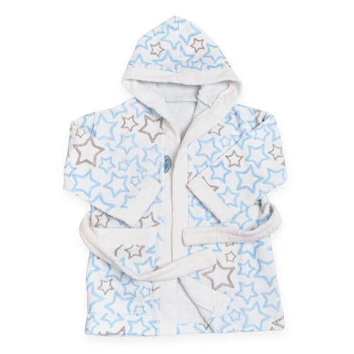 Ti TIN, Peignoir de bain pour Enfant, Taille 1 à 2 ans | Sortie de bain Douce, Confortable et Absorbante - 90% coton, 10% polyester - Tissu Éponge - Motif Étoile - Couleur Bleu - 340g/m²