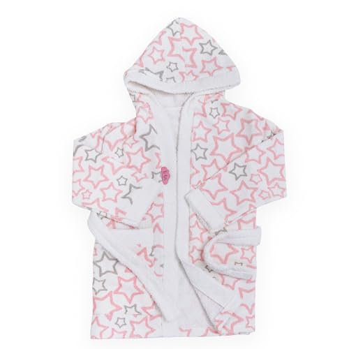 Ti TIN, Peignoir de bain pour Enfant, Taille 5 à 6 ans | Sortie de bain Douce, Confortable et Absorbante - 90% coton, 10% polyester - Tissu Éponge - Motif Étoile - Couleur Rose - 340g/m²