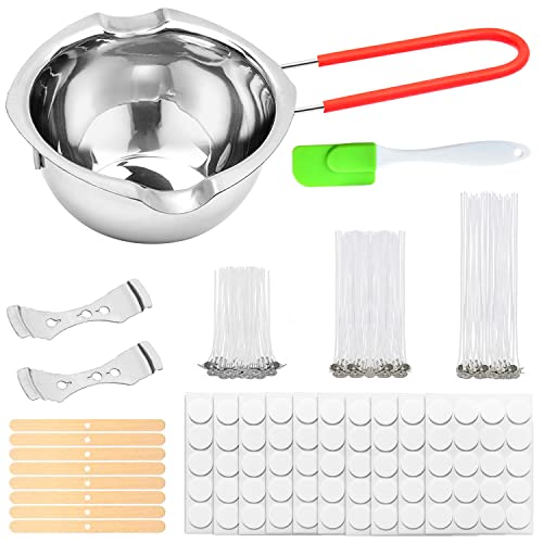 ZIOYA 180 pcs Kit Fabrication de Bougies Fabrication Bougie Meches pour Bougies 2 Planches Fixes + 10 Feuilles de Scotch Double Face + 1 Pot + 8 Planches Bois + 1 Grattoir Silicone