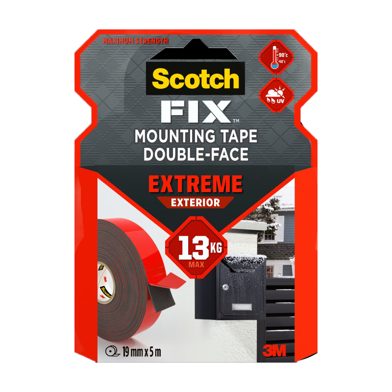 Scotch Ruban Adhésif Double Face Extra Résistant Extérieur Noir 5m x 19mm