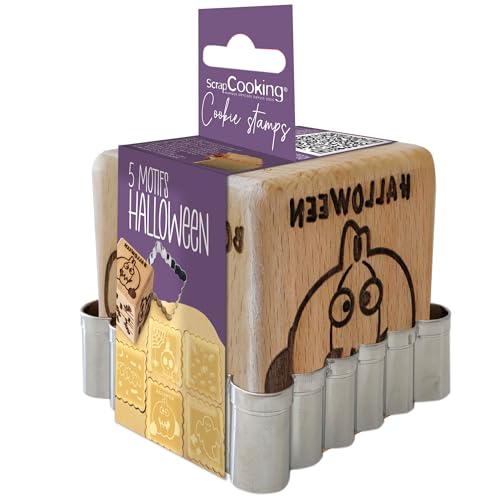 ScrapCooking - Tampon Pâtisserie en Bois à Motifs Halloween - Avec 1 Découpoir Emporte-Pièce Biscuit & Cube avec 5 Faces Gravées en Relief - Moule Décoration Magie, Anniversaire - 5298