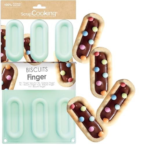 ScrapCooking - Moule Silicone 7 Biscuits « Finger » - Moule Barquettes - Apte Four & Congélateur - Pâtisserie Gâteau Enfant - Ustensile Souple - Recette Fingers Choco - Vert d’Eau - 3184