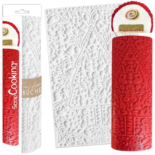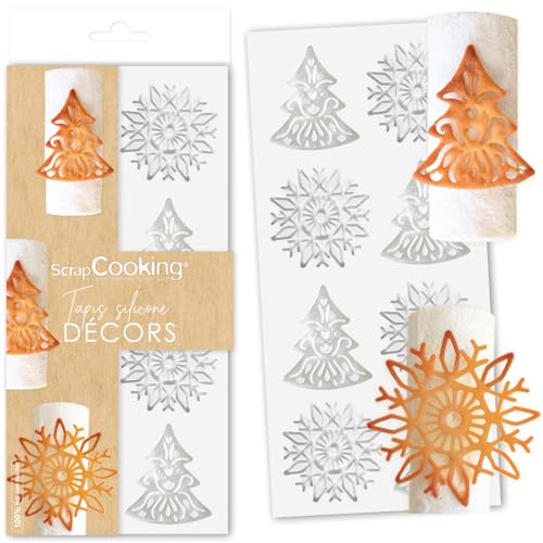 ScrapCooking - Moule pour Tuiles Croquantes « Sweet Xmas » - Tapis Silicone en Relief pour Créer Décorations Bûches & Gâteaux - 28 x 18 cm - Décors Pâtisserie, Dessert Noël - 1971