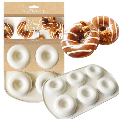 ScrapCooking - Moule à Donuts Antiadhésif - 6 Formes pour Donuts Beignets & Babas - Moule en Métal - Apte Four & Congélateur - Pâtisserie Gâteau - Beige - 1298