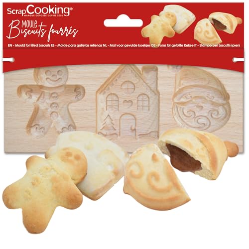 ScrapCooking - Moule à Biscuits Fourrés Noël - Moule Bois Petits Gâteaux à Fourrer de Chocolat, Confiture de Fruits, Pâte à Tartiner - Bonhomme Pain d’épices, Père Noël - Ustensile Pâtisserie - 2152