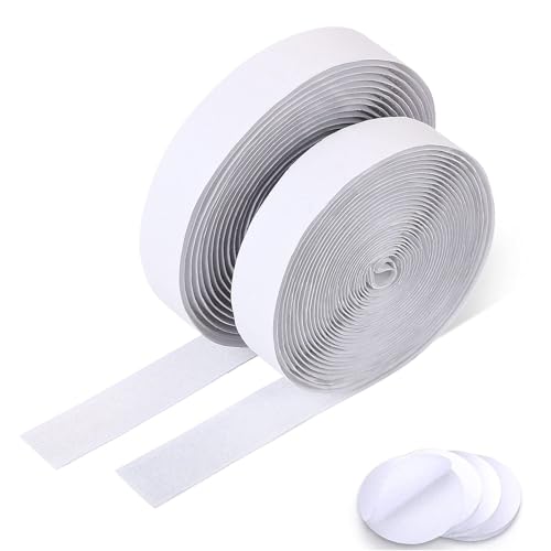 Vinabo Scratch Autocollant Double Face 8 M X 20 MM, Hook Loop Rubans Ruban AdhéSif Puissant à Crochets Et Boucles pour La Couture (Blanc) (Lot de 2)